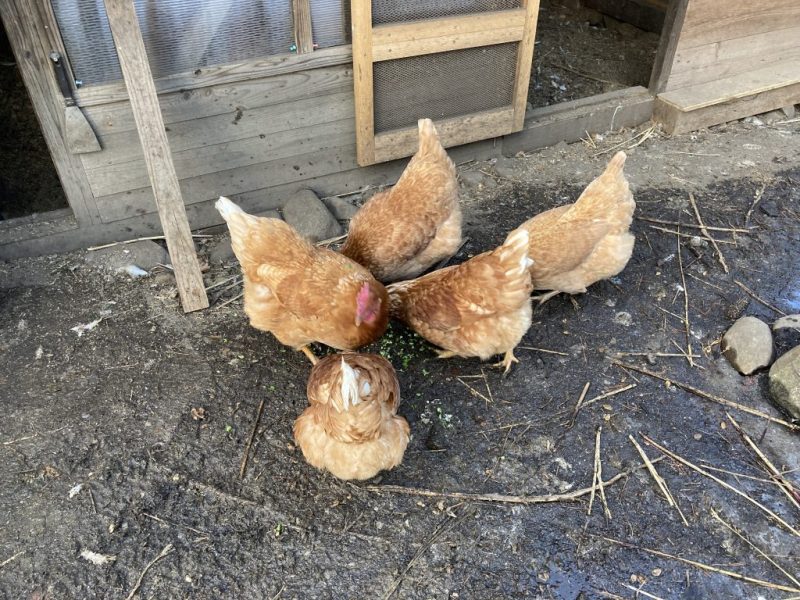 しばらくニワトリたちのことを書いていませんでしたが、現在、2022年生まれの2羽(おーちゃん、ふくちゃん)が健在で、2025年に迎えた3羽と合計5羽で元気に暮らしています。