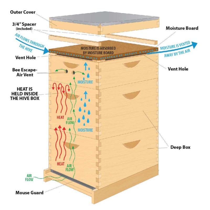 保湿ボードは横風換気を可能にし、追加の水分を吸収するのに役立ちます。巣箱内の蒸気はホットボックスを通過し、保湿ボードに閉じ込められて蒸発します。